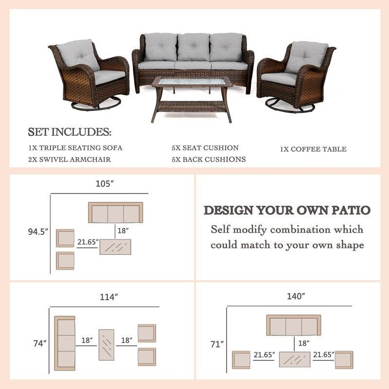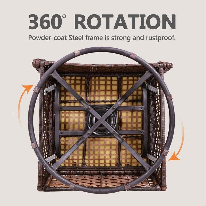 - Swivel-action chairs perform a 360 spin and gentle rocking motion